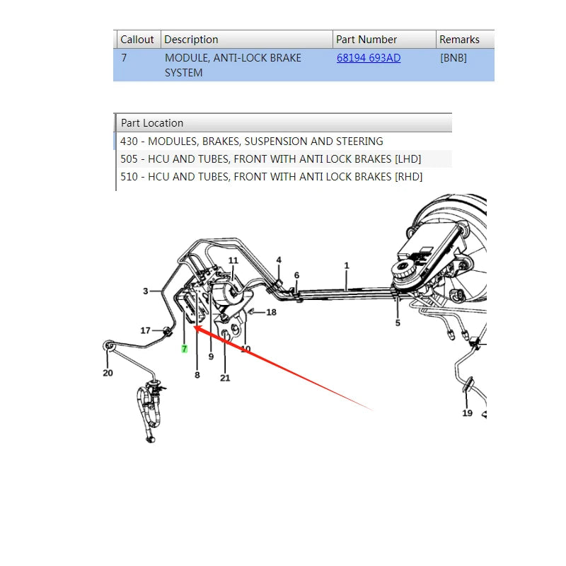 68194693AF Anti-Lock Brake System Module for Dodge 2013-2017 ABS Control Module