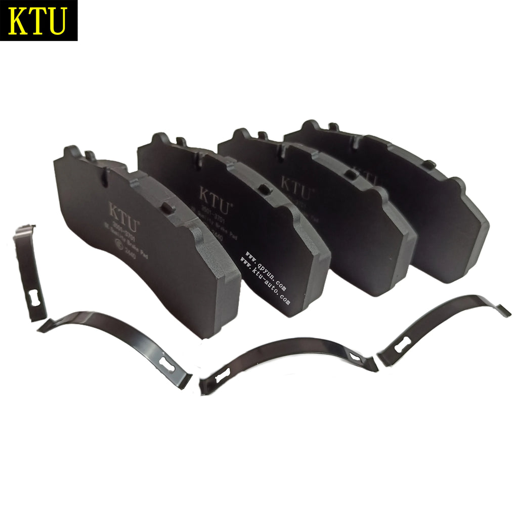 Configuration: Complete heavy-duty brake pad set manufactured to OEM dimensional standards, supplied with matched backing plates and engineered for low dusting and short stopping distances under commercial duty cycles.