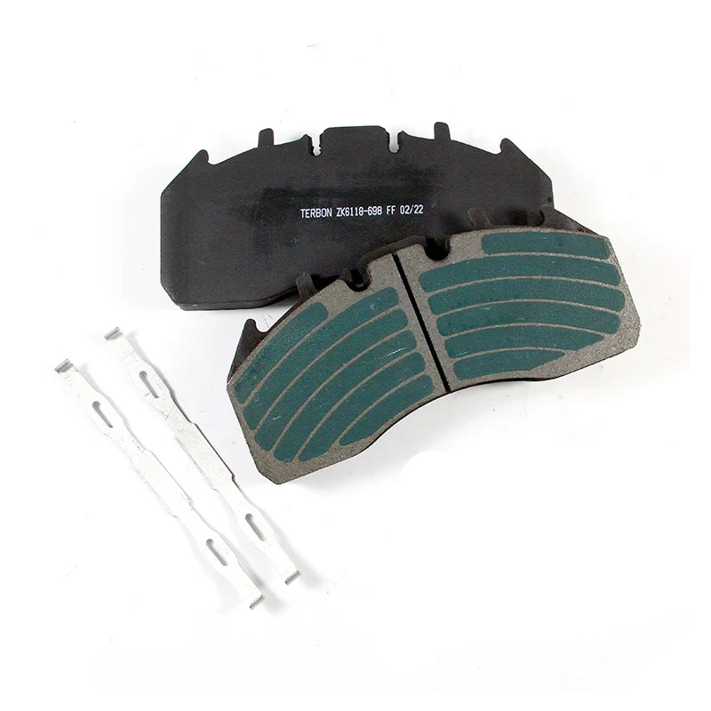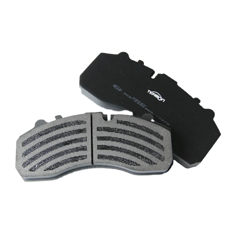 Configuration: Complete heavy-duty brake pad set supplied with mounting accessories, manufactured to OEM dimensional standards and compliant with E-mark certification requirements for commercial vehicles.