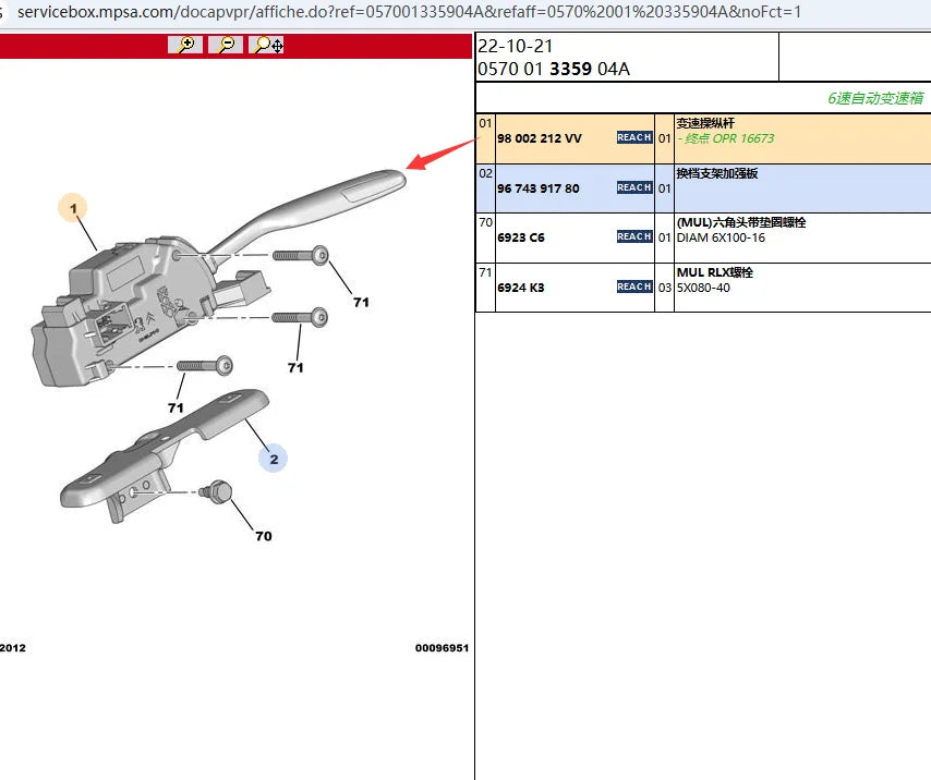 Vehicle Compatibility: Citroën C4 Picasso (UA) and Citroën Grand C4 Picasso (UA) Cars (2006–2013) equipped with automatic or electronically controlled manual transmissions using the factory-mounted gear selector stick corresponding to these OE references.