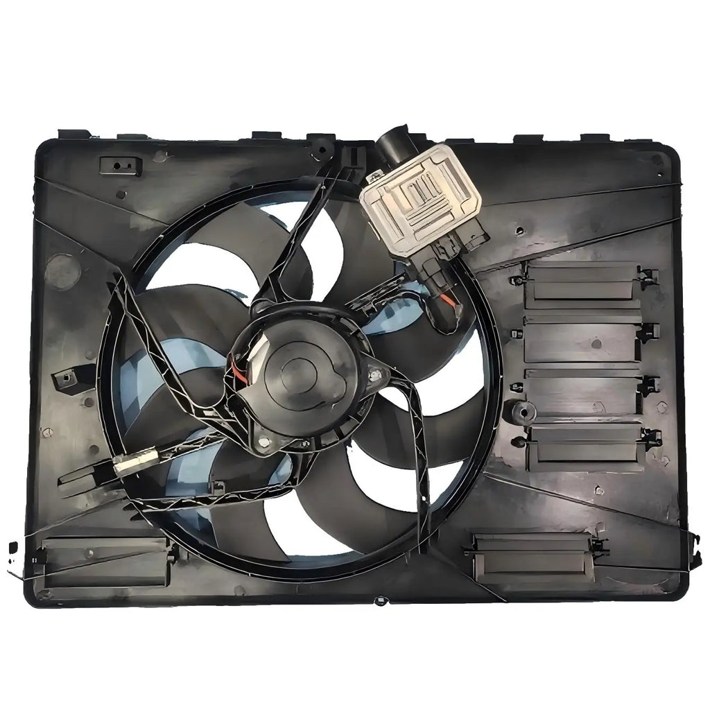 Configuration: Complete electric cooling fan assembly with motor, shroud, and integrated speed control module.