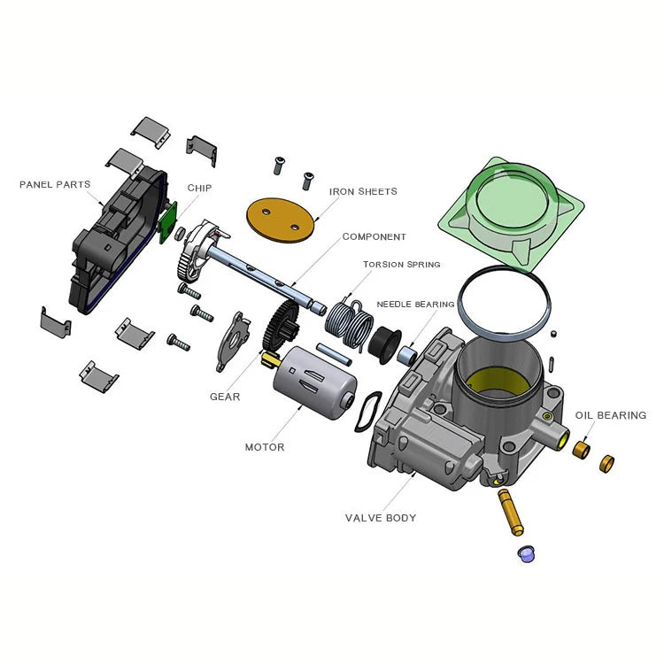 Function: Regulates engine air intake to ensure smooth acceleration, stable idle speed, and efficient fuel combustion.