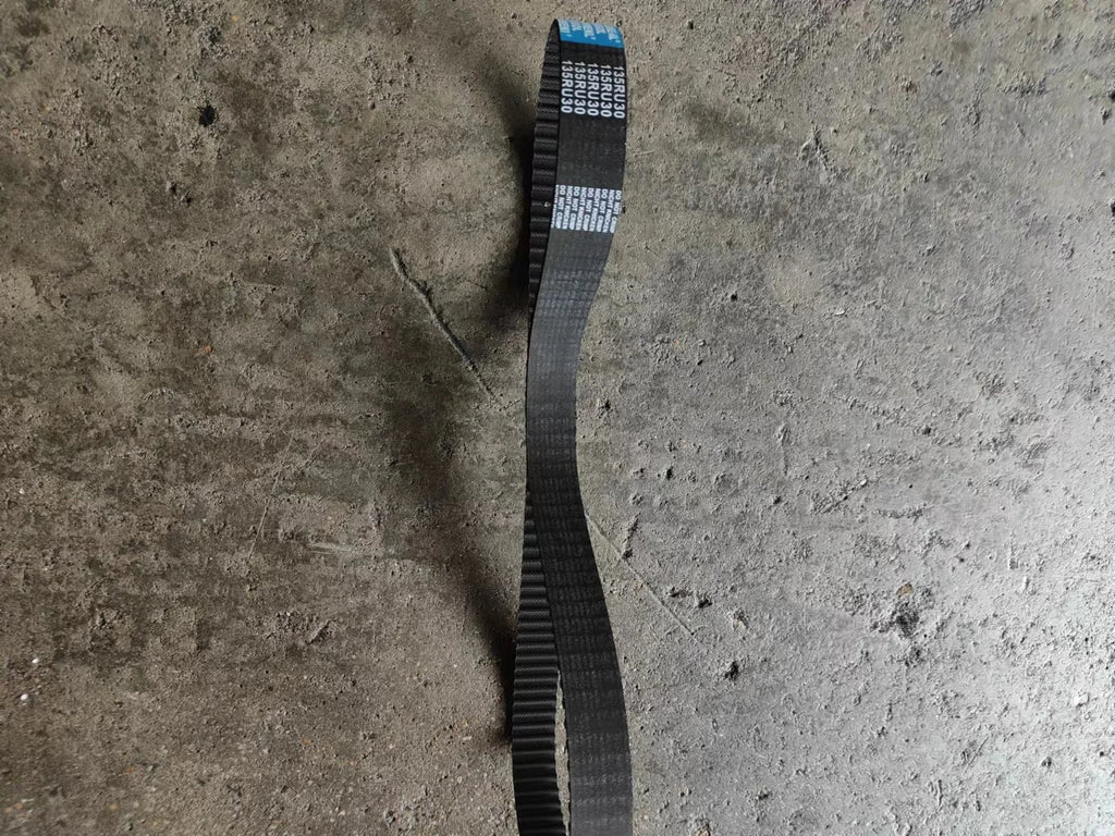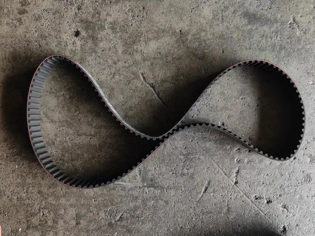Configuration: Reinforced timing belt manufactured with high-strength rubber composite, fiberglass tension cords, precise tooth-profile geometry and heat-resistant materials that maintain stable tension and timing accuracy under continuous operation.